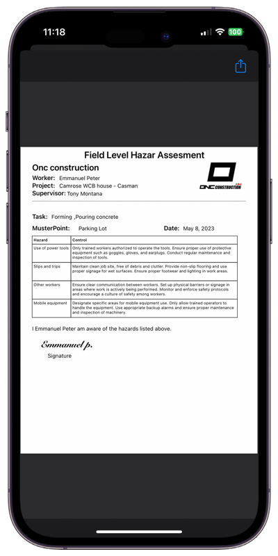 Never write a Field Level Hazard Assessment again! All data is stored locally for reuse.